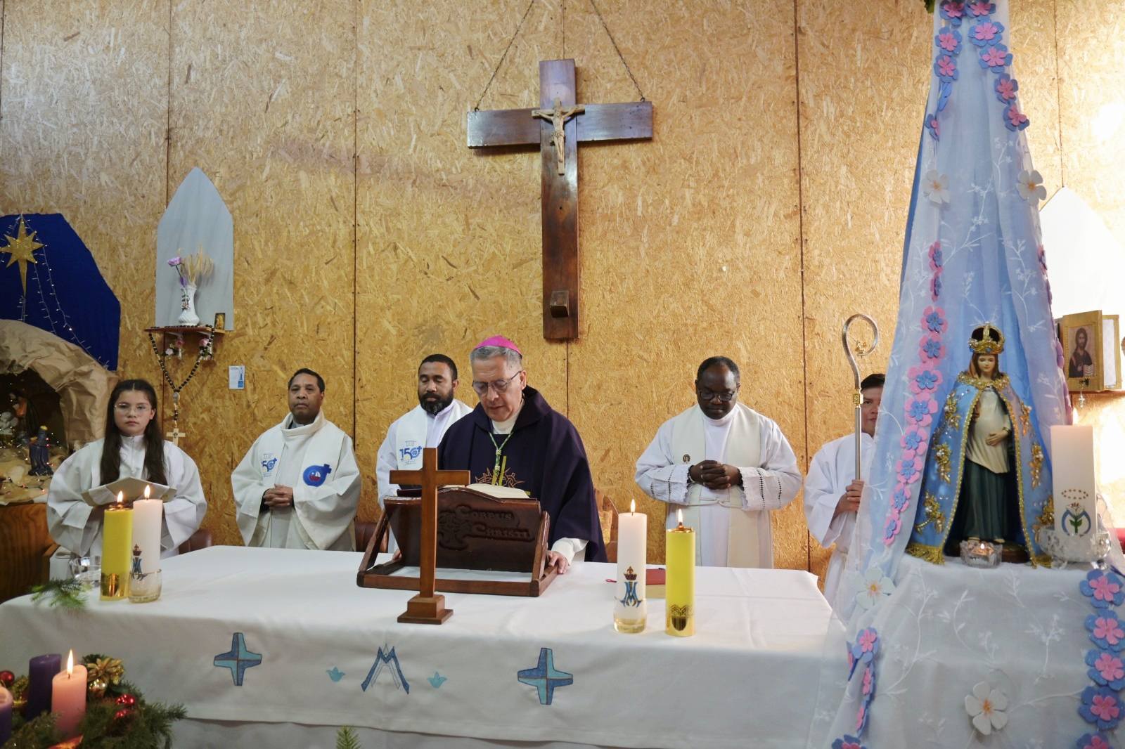 La Eucaristía fue presidida por nuestro Obispo, Monseñor Carlos Godoy, quien estuvo acompañado por el párroco, el Padre Juan Pablo Wewo (SVD), junto al Padre Juan Delau (SVD) y el Padre Aures Da Silva (SVD), todos miembros de la Congregación del Verbo Divino.