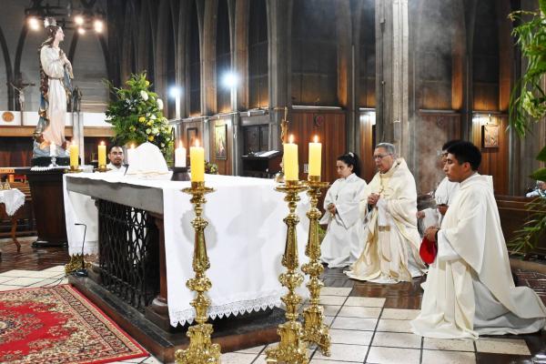 La Santa Misa fue presidida por el Obispo de la diócesis, Monseñor Carlos Godoy, quien estuvo acompañado por el párroco de la Catedral, Padre Patricio Sánchez, y el diácono Carlos Barría.