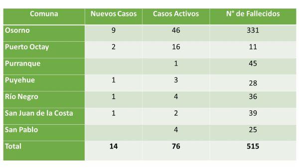 Balance diario registró 14 nuevos casos para la Provincia de Osorno