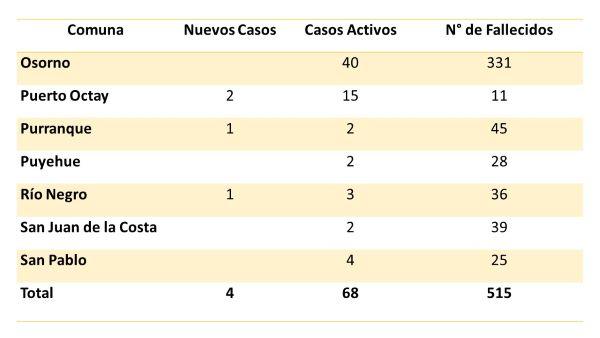 Provincia de Osorno registró cuatro nuevos casos este martes