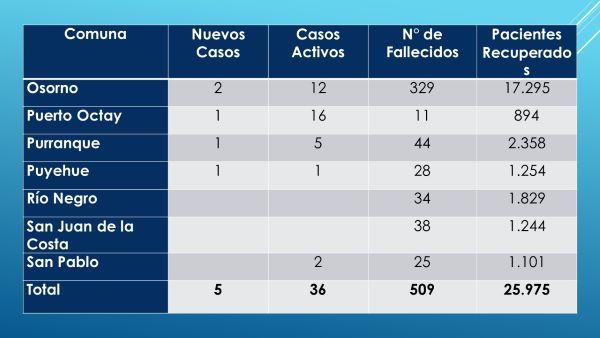 Informe diario reportó una persona fallecida y 13 nuevos casos en la Provincia de Osorno