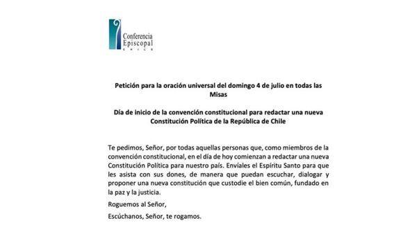 Petición para la oración universal en el día de inicio de la convención constitucional