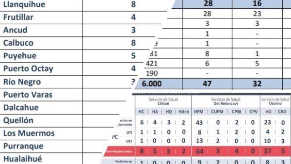 Cuatro decesos, 38 pacientes positivos con COVID-19 y 213 casos activos en la provincia de Osorno